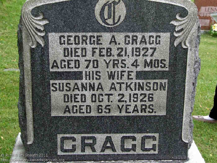 • Burial: 23 Nov 1882, Boyd Cem Shallow Lake Onatario Canada: Canada GenWeb Cemetery Project. In Memory of Jane, wife of Appleyard Cragg, died Nov. 23, 1882, aged 67 Y's 10 M's