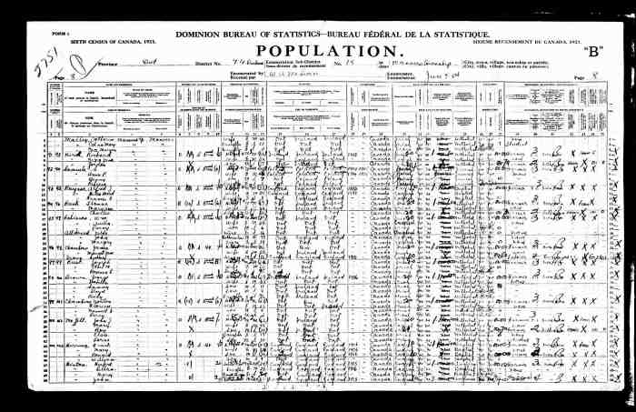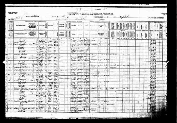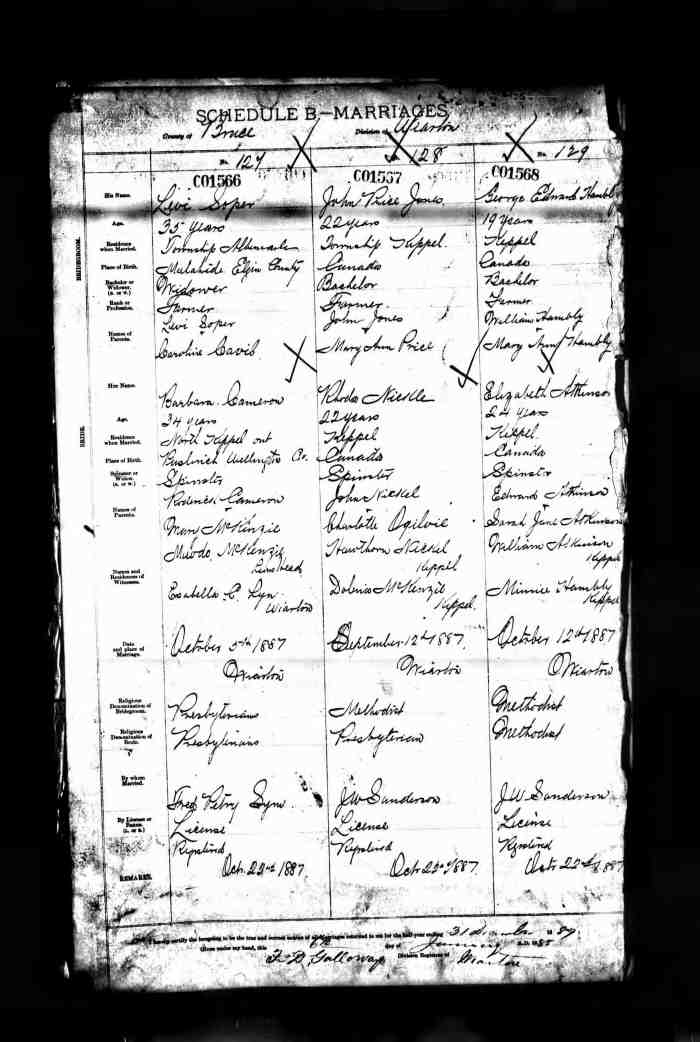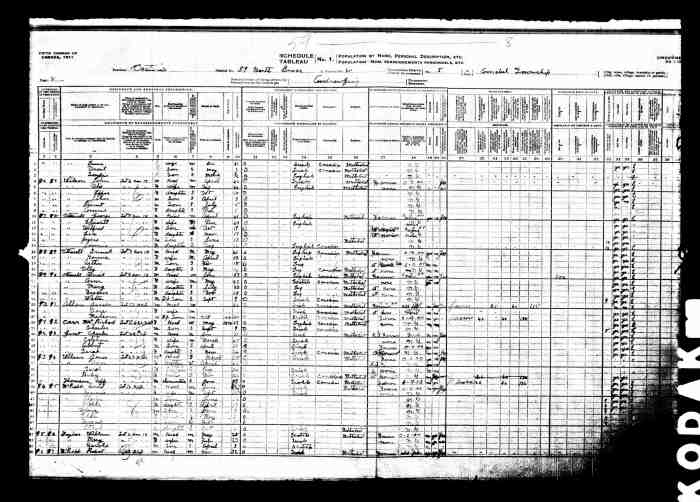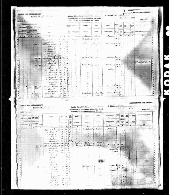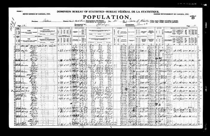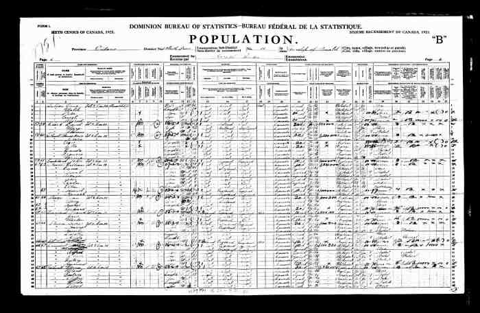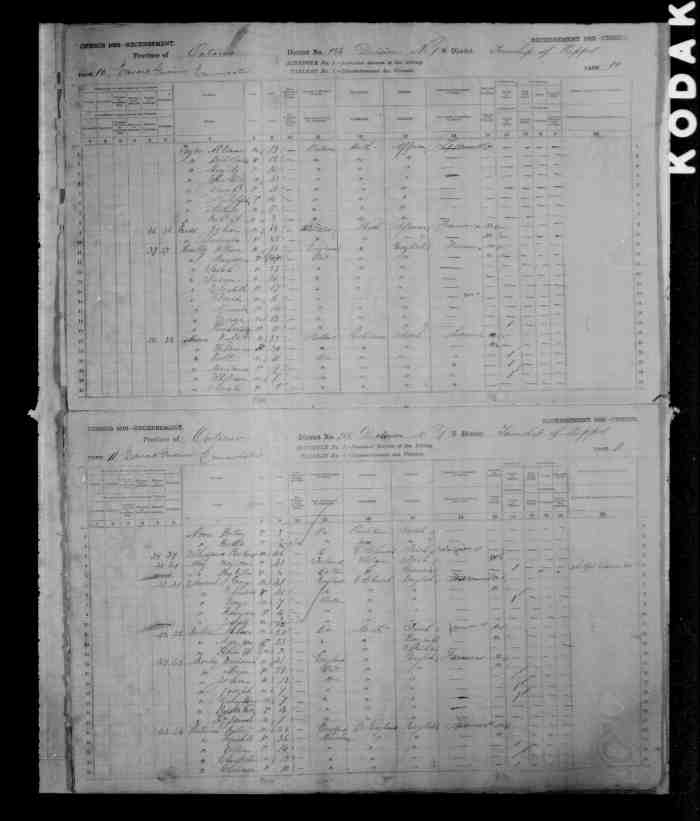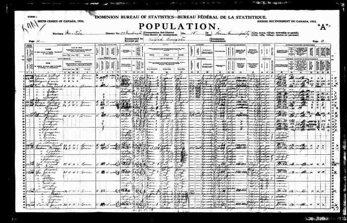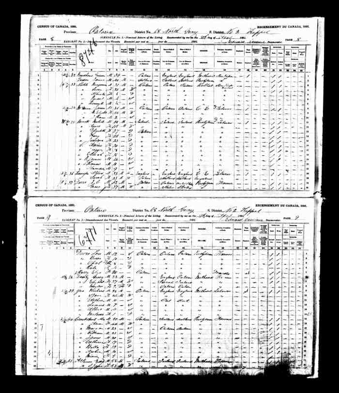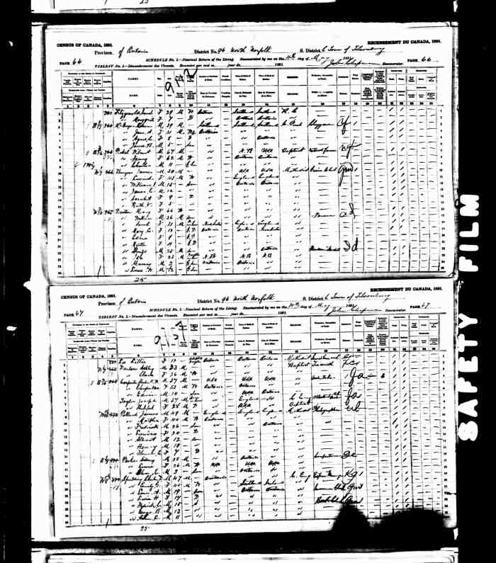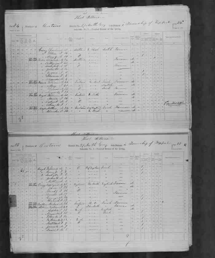 • Census: Schedule A, Roll: C-9955; Page: 85; Family No: 298, 1871, Keppel Twp., Grey North Co., Ontario, Canada. 10 (Household Member)