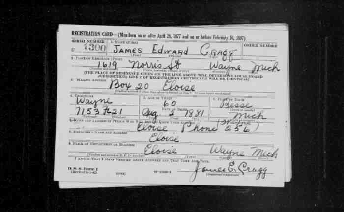159. James Cecil ALLDREAD was born on 18 Jul 1892 in Manvers Township, Durham County, Ontario, Canada, MS929; Reel: 111, Pg. 186, #021825202 and died on 26 May 1971 aged 78.