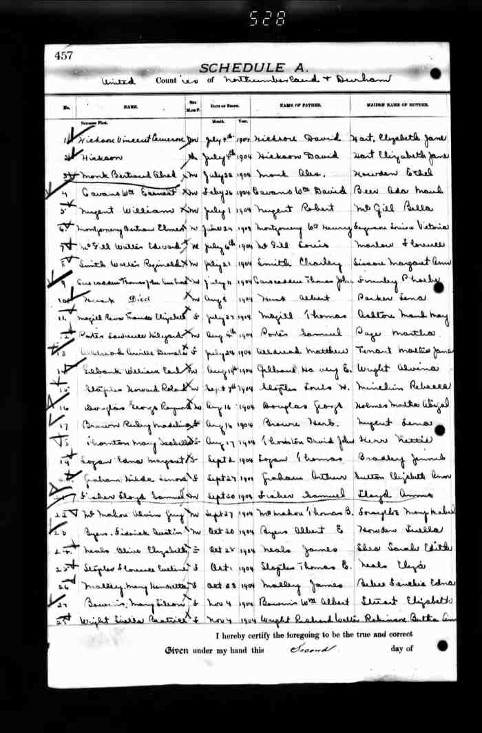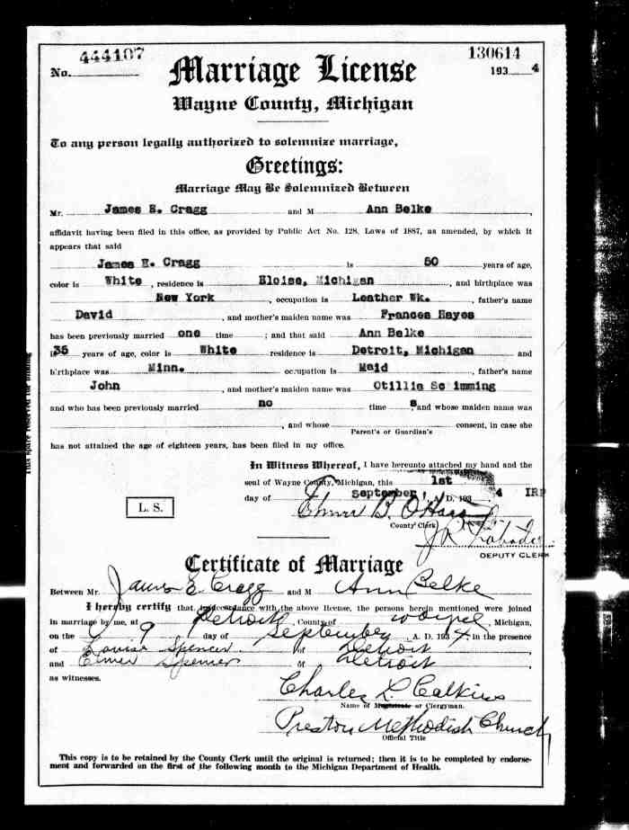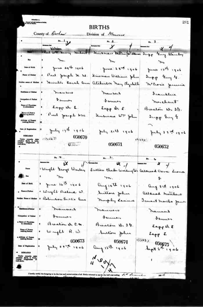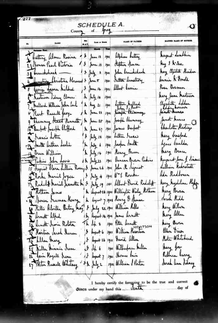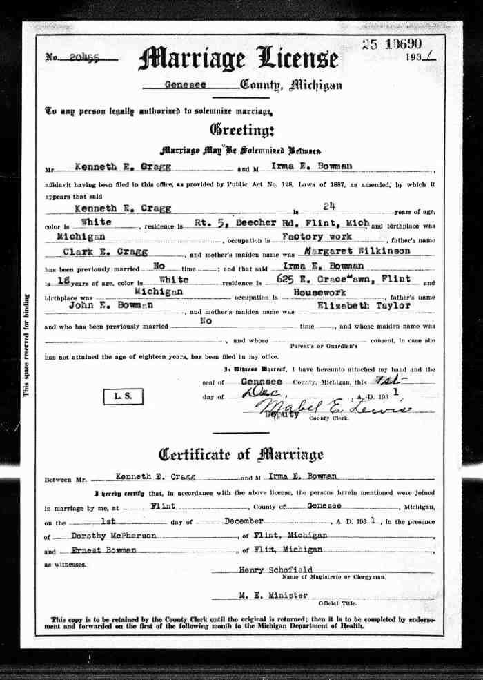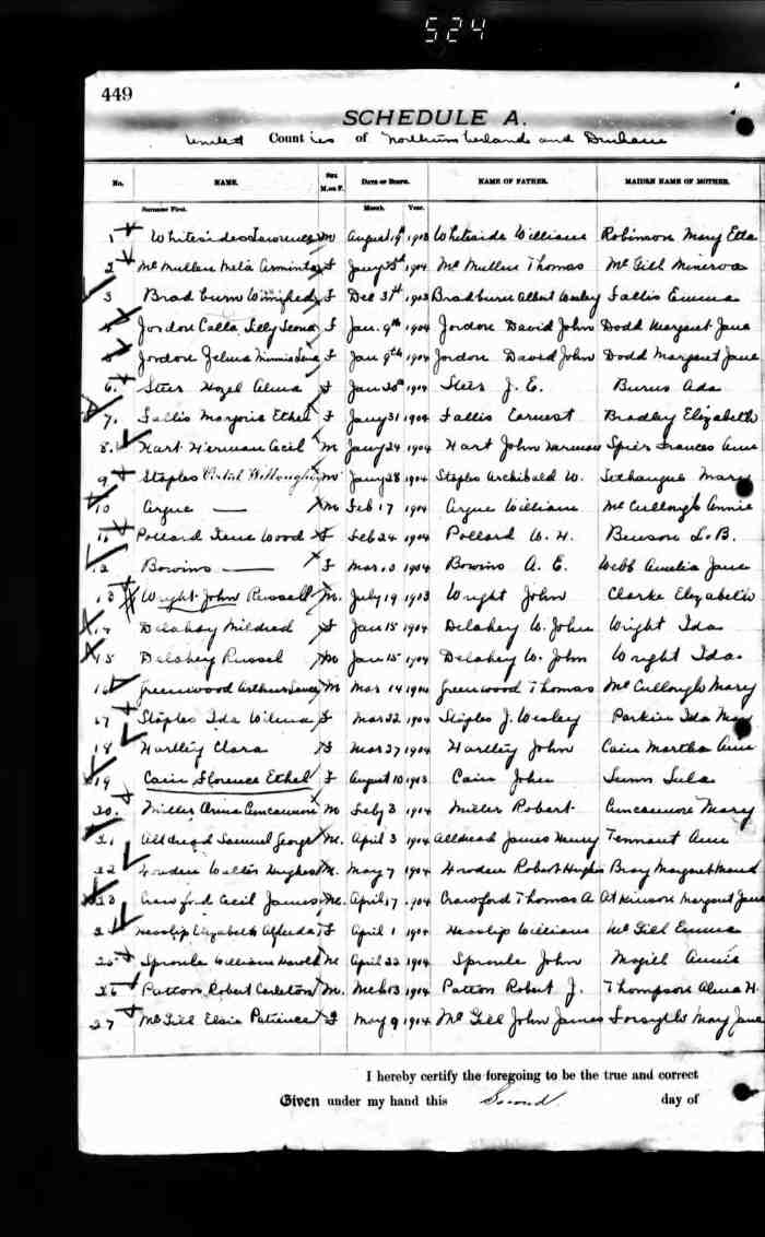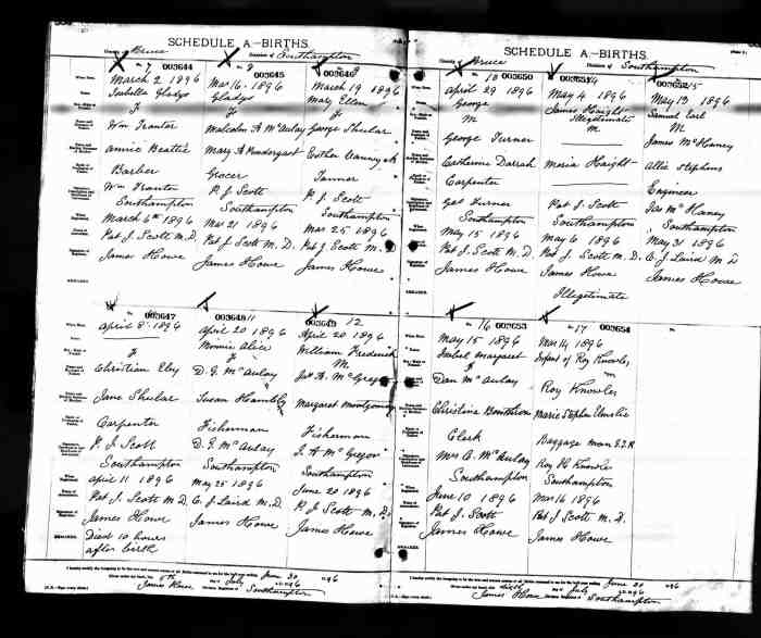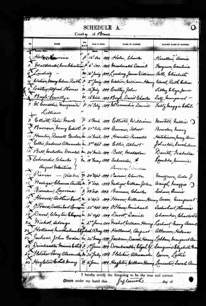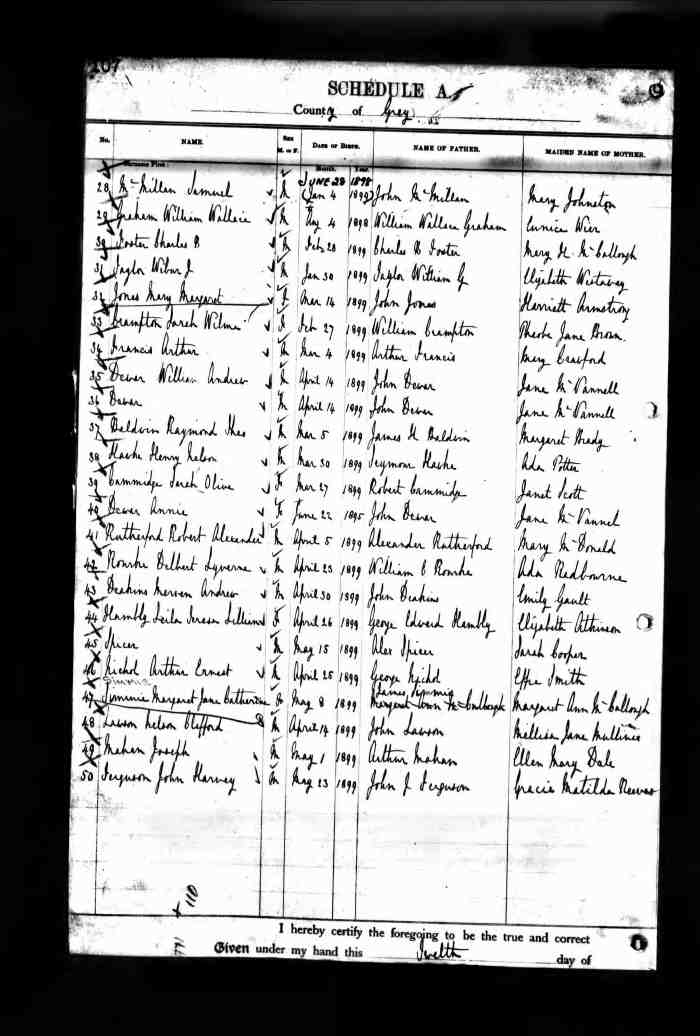 • Birth: 2 Jul 1912, Grey, Ontario, Canada, MS929, Reel 226, Pg. 334, #022486.