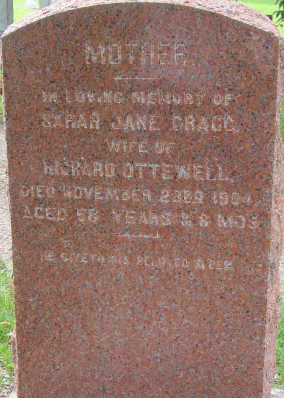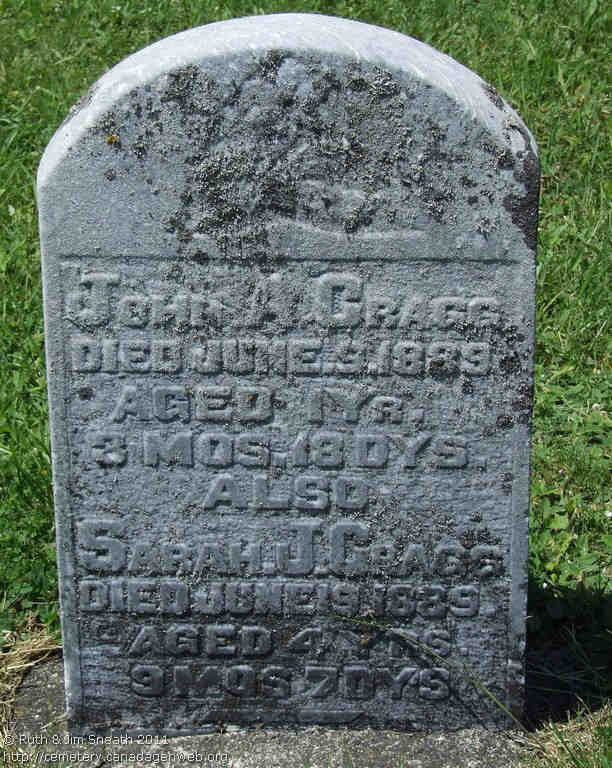+ 16 F iv. Sarah Jane CRAGG was born on 22 Mar 1846 in Ontario, Canada, died on 23 Nov 1904 in Clover Bar, Alberta, The Territories aged 58, and was buried in Clover Bar Cemetery, Clover Bar, Alberta, Canada: Canadian Headstones.com/ Alberta.15