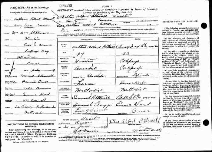 • Residence: Lot 25, Conc. 2 SCD,, 1877, Keppel Twp., Grey Co., Ontario, Canada.