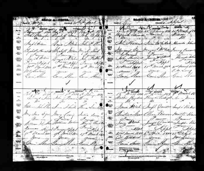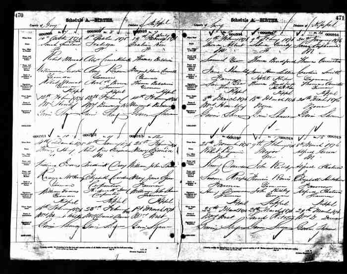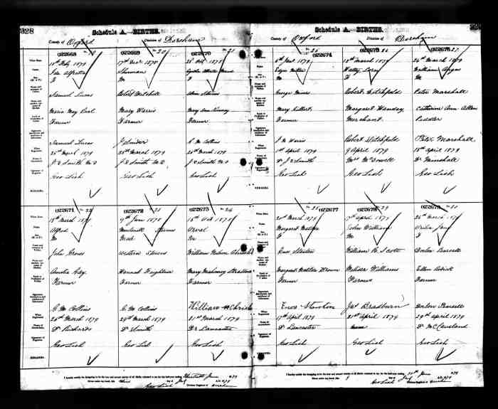 2. If she was 65 at the time of the 1881 census then she would not have been 62 at the time of her death one year later. She is more likely to have provided the information to the census taker but someone else must have provided her age to the stonemason who made the tombstone. Did that person really know her birth year and age?