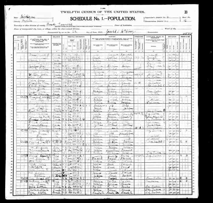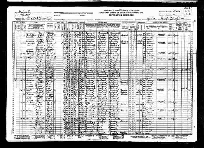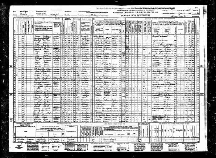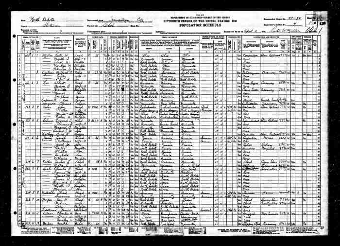 • Census: 1930, Jamestown, Stutsman, North Dakota; Roll: 1743; Page: 1A; Enumeration District: 0034; Image: 319.0; FHL microfilm: 2341477.