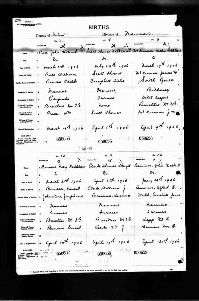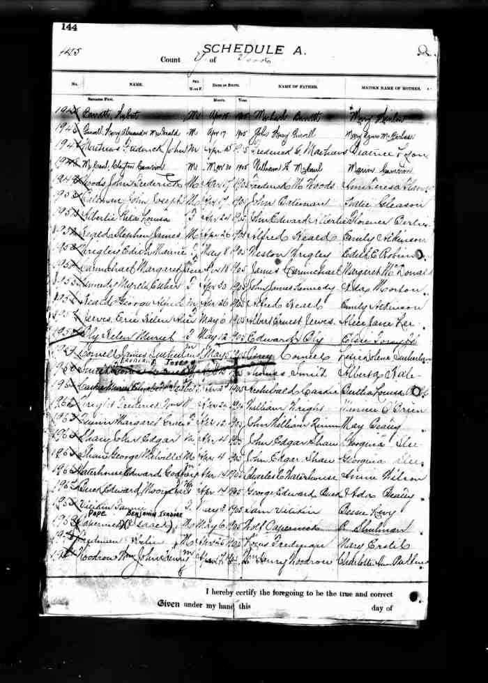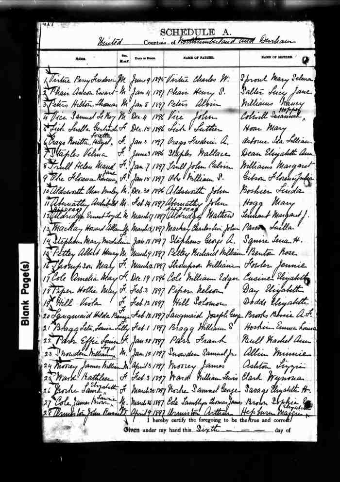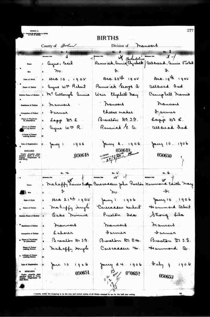 158. John Hiel ALLDREAD was born on 12 Aug 1892 in Manvers, Durham, Ontario, Canada, MS929; Reel: 111, Pg. 107, # 021826.200