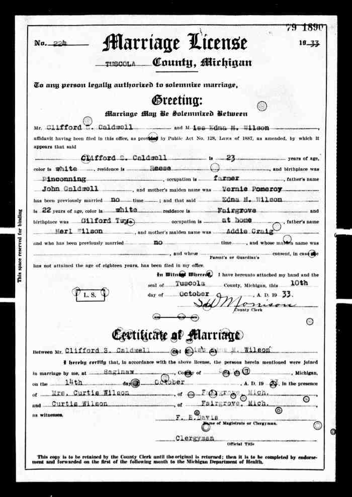Clarence married Madeline HARRISON in Likely in Manitoba, Canada. Madeline was born on 16 Apr 1913 in Manitoba, Canada and died on 29 Nov 1975 aged 62.