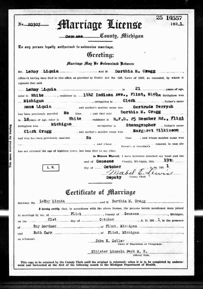 Marriage Notes: Unconfirmed date and place of marriage.