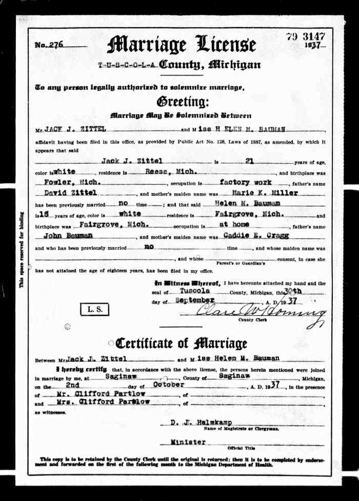 David married Elsie Armand PETERS on 27 Oct 1926 in Durham, Ontario, Canada, MS932, Reel 773, #040954.359 Elsie was born in 1903 in Bowmanville, Durham, Ontario, Canada, MS929; Reel: 164, Pg. 264-265, Line 9,360 and died on 17 Dec 1984 aged 81.