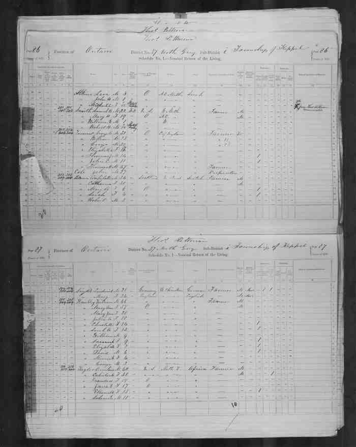 • Census: Schedule A, Roll: C-9955; Page: 85; Family No: 298, 1871, Keppel Twp., Grey North Co., Ontario, Canada. 10