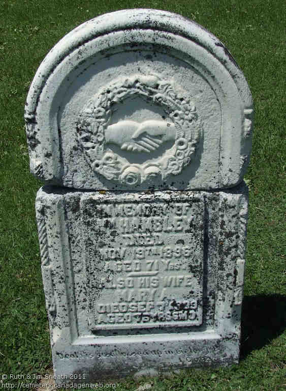 4. Esther ADAMSON was born in 1816 in England, died on 28 Mar 1856 in Dereham Twp., Oxford Co., Canada West, Canada aged 40, and was buried in St. Charles Anglican Cemetery in Dereham Twp., Oxford Co., Ontario, Canada. Now in South West Oxford Twp.