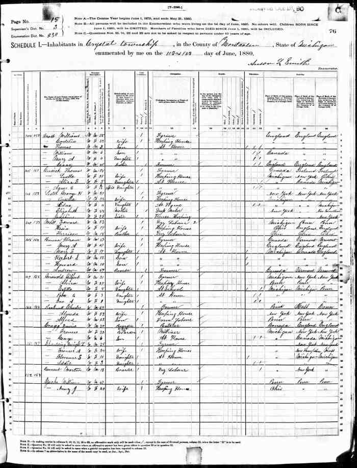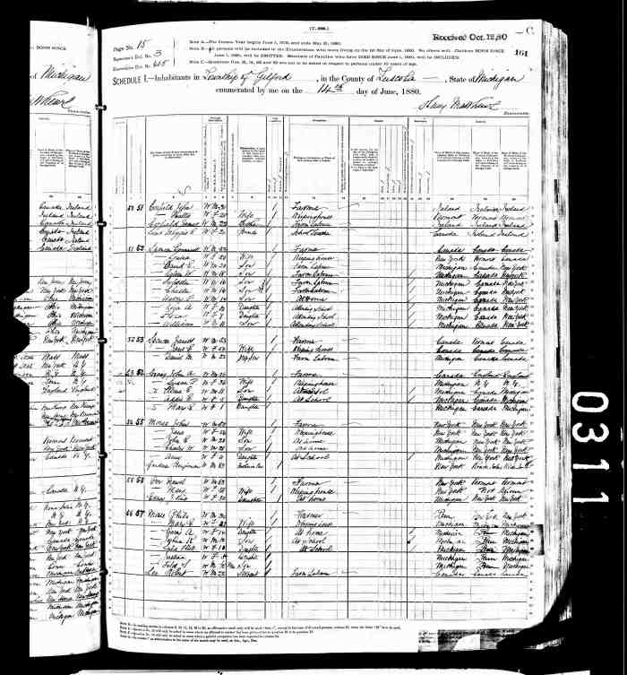• Census: Schedule A, Roll: C_13262; Page: 49; Family No: 202, 1881, Keppel Twp., Grey North Co., Ontario, Canada. 11
