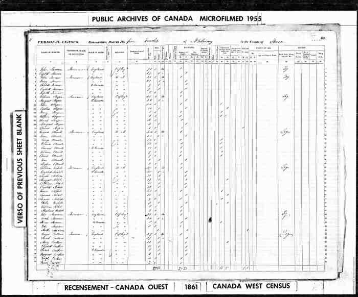 • Census: Scedule A, C-1060-1061, Pg 20, Line 12, 1861, Dereham Twp., Oxford Co., Canada West, Canada. 9