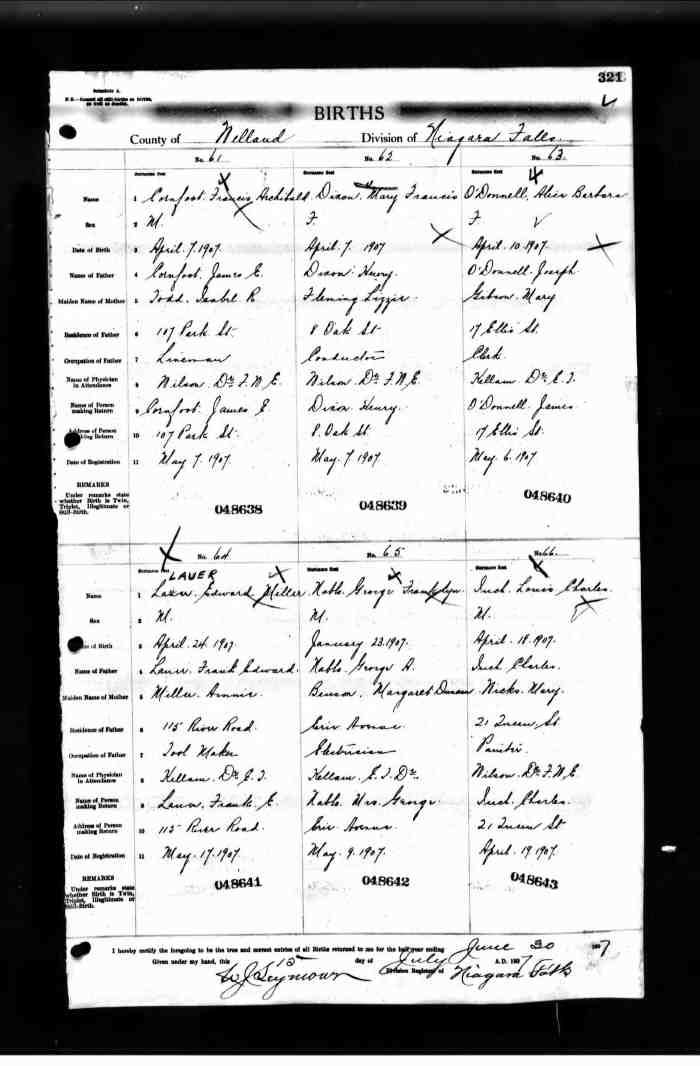 2. Ontario Archives of Ontario, MS 929, MS 930, MS 933, MS 936, MS 940, MS 946, Reel 189: Pg. 321, #048641, Edward Miller Lauer; digital image, Provo, UT, USA: Ancestry.com Operations Inc, "MS929," Ancestry.com (http://ancestry.com: 15 Aug 2016).