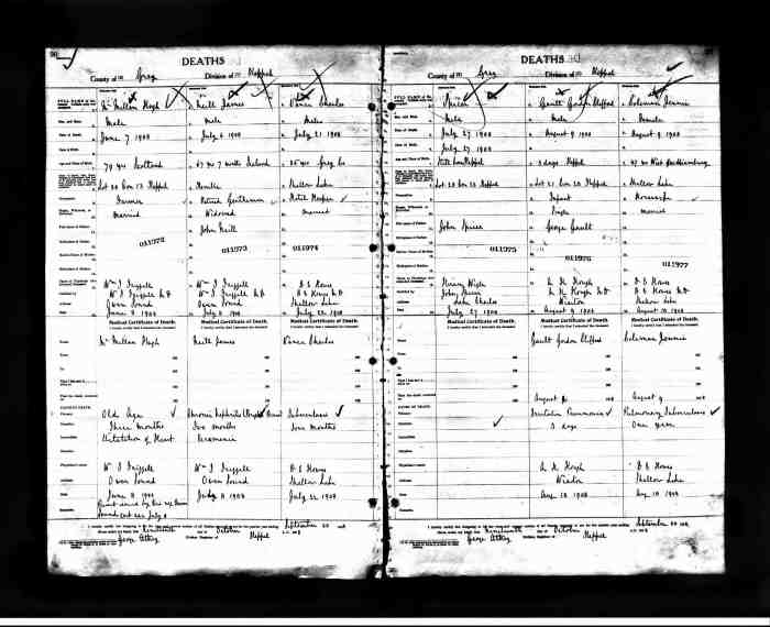 Death Notes: Death registered in the Township of Sullivan, Grey County, Ontario.
