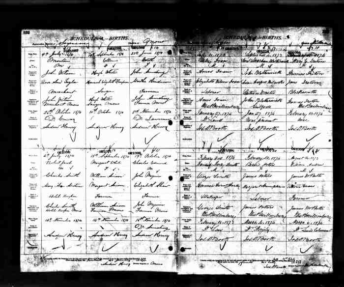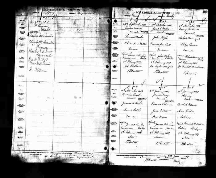 109. Grey, Ontario, Archives of Ontario; Series: MS932; Reel: 254, MS932; Reel: 98: Pg, 159-160, #006820, Wilson Brown-Margrete (Maggie) Lee, 1899; digital images, Provo, UT, USA: Ancestry.com Operations, Inc., Ancestry.com (http://ancestry.com/).