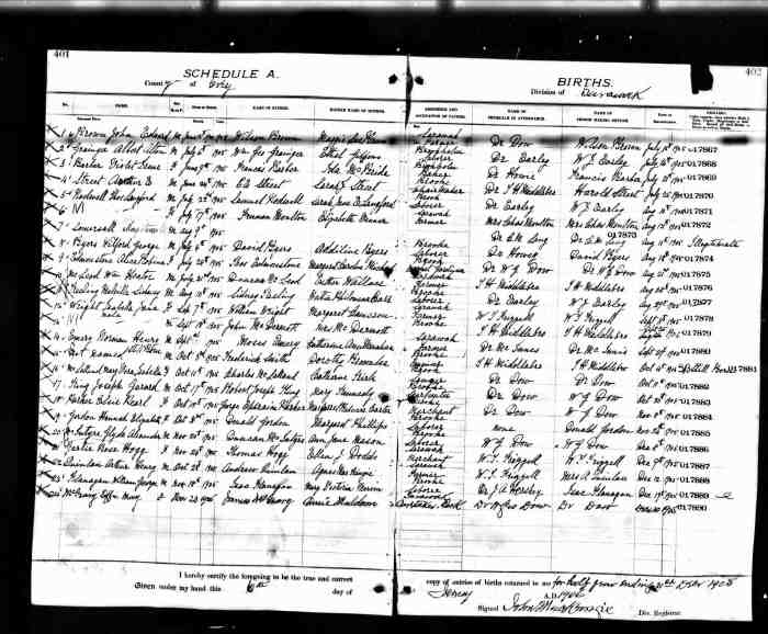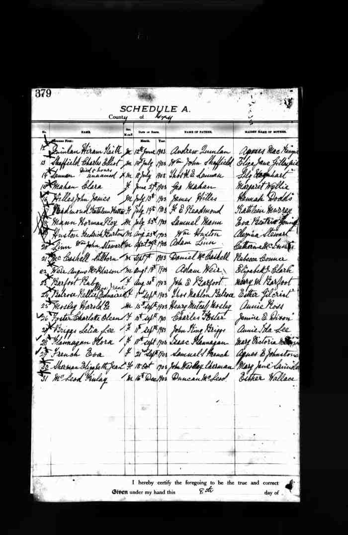 73. Ontario Archives of Ontario, MS 929, MS 930, MS 933, MS 936, MS 940, MS 946, Reel 172: Pg. 401-402, Line 21, #017887, Gertie Rose Hogg; digital image, Provo, UT, USA: Ancestry.com Operations Inc, "MS929,," Ancestry.com (http://ancestry.com: 6 Dec 2015).