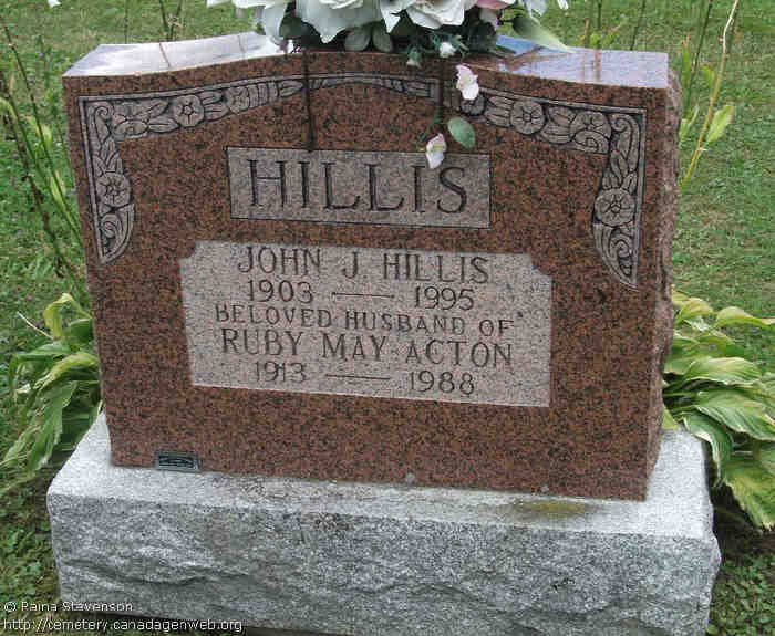 110. Canada Gen Web, Canada Gen Web;s Cemetery Project, digital images (http://geneofun.on.ca/cems/ON/ONGRY10924 : accessed 29 Nov 2015), Tombstone: Maggie & Wilson Brown.