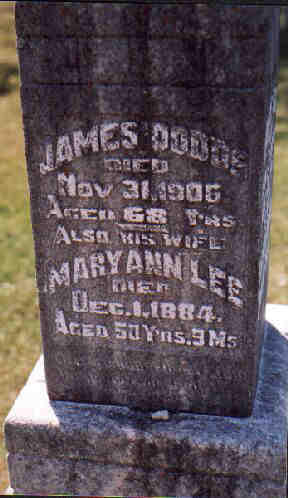 + 28 F iii. Mary Ann Lee was born in 1831 in Ontario Canada and died on 1 Dec 1884 in Sarawak Twp., Grey North Co., Ontario, Canada, MS935, Reel 37, Pg. 430, #0054386 aged 53.