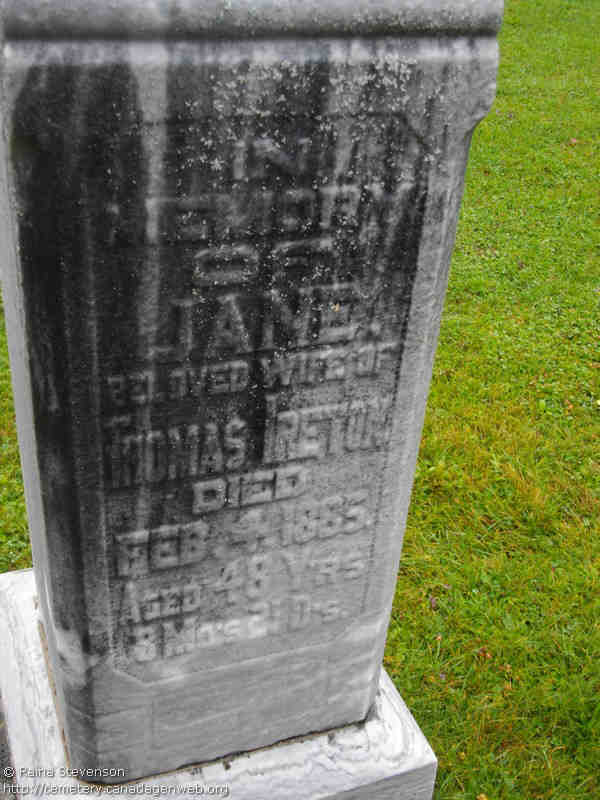 + 29 F iv. Jane Lee was born on 25 Jul 1836 and died on 4 Feb 1885 in Grey, Ontario, Canada, MS935, Reel 40, Pg. 443, #0055847 aged 48.